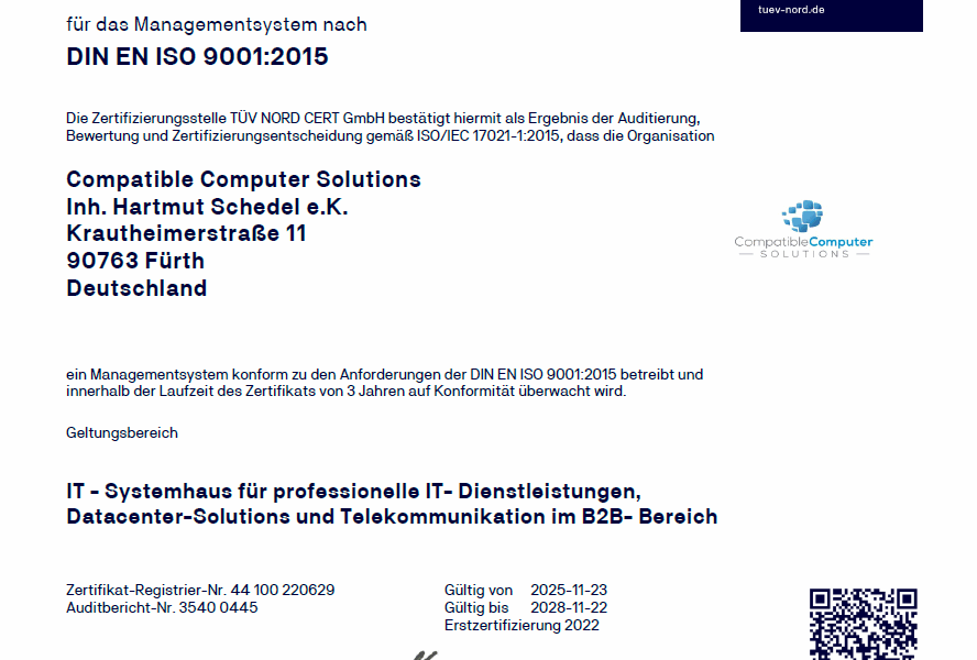 Wir freuen uns, bekannt geben zu dürfen, dass Compatible Computer Solutions Inh. Hartmut Schedel e.K. erfolgreich das innovaphone Partnerprogramm „iP Advanced“ durchlaufen hat und damit erneut offiziell zertifiziert wurde. Im Rahmen des Programms wurden sämtliche vorgesehenen innovaphone Sales- und Technik-Trainings erfolgreich absolviert. Damit ist unser Team bestens geschult, um auch komplexe innovaphone Installationen eigenständig und professionell umzusetzen. Dank eines aktiven