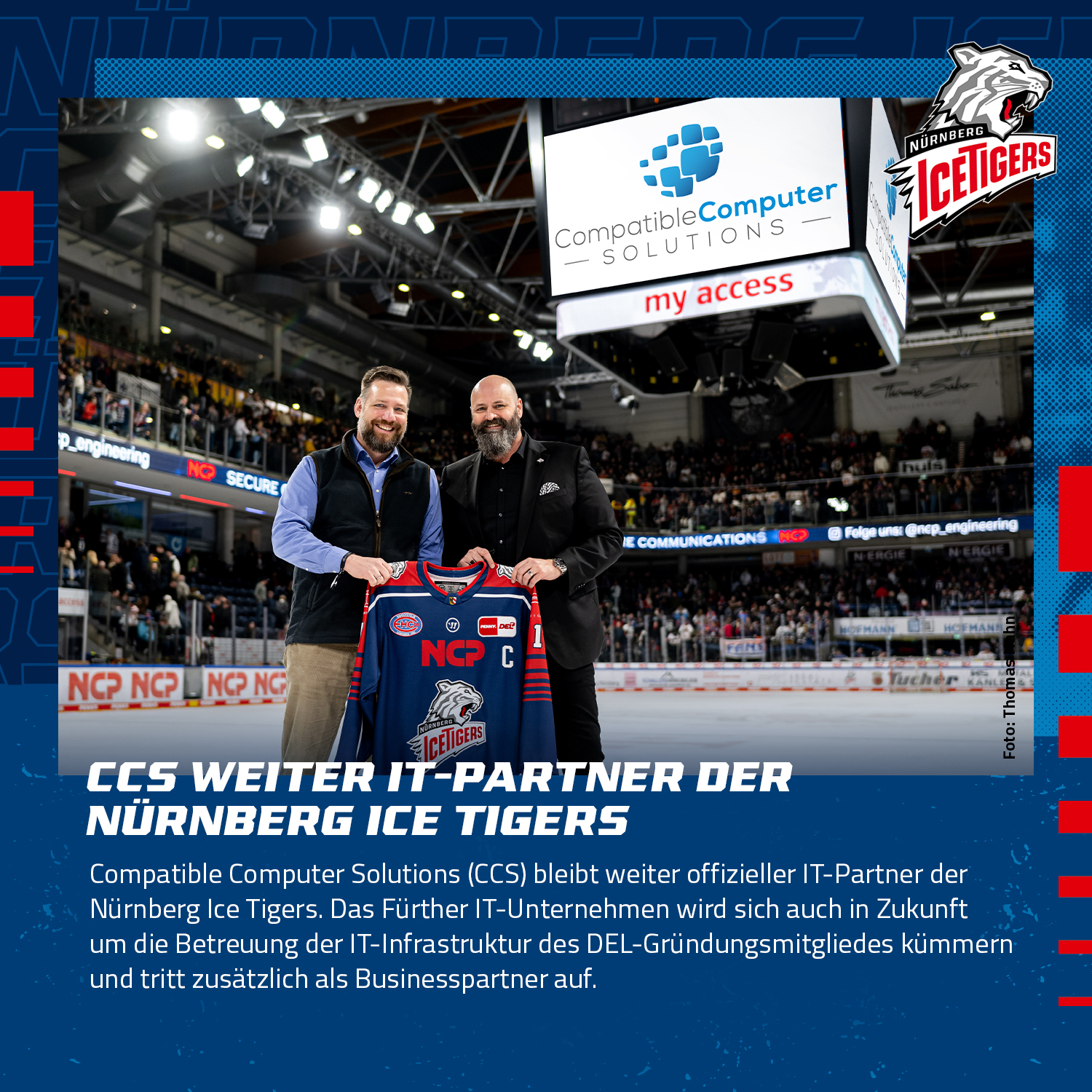Compatible Computer Solutions (CCS) bleibt weiter offizieller IT-Partner der Nürnberg Ice Tigers. Das Fürther IT-Unternehmen wird sich auch in Zukunft um die Betreuung der IT-Infrastruktur des DEL-Gründungsmitgliedes kümmern und tritt zusätzlich als Businesspartner auf.